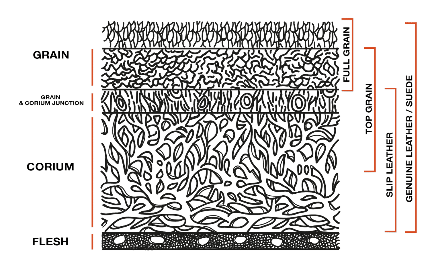 It comes from top layer of the animal hide, which has the densest and strongest leather that gives it its durability