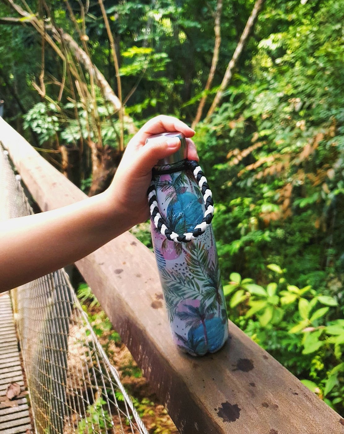 This bottle carrier features a braided handle that give its slim and unique look, while having a adjustable loop fastened with a toggle, this bottle carrier is able to fit most bottles, bubble tea cups and even disposable mineral bottles.