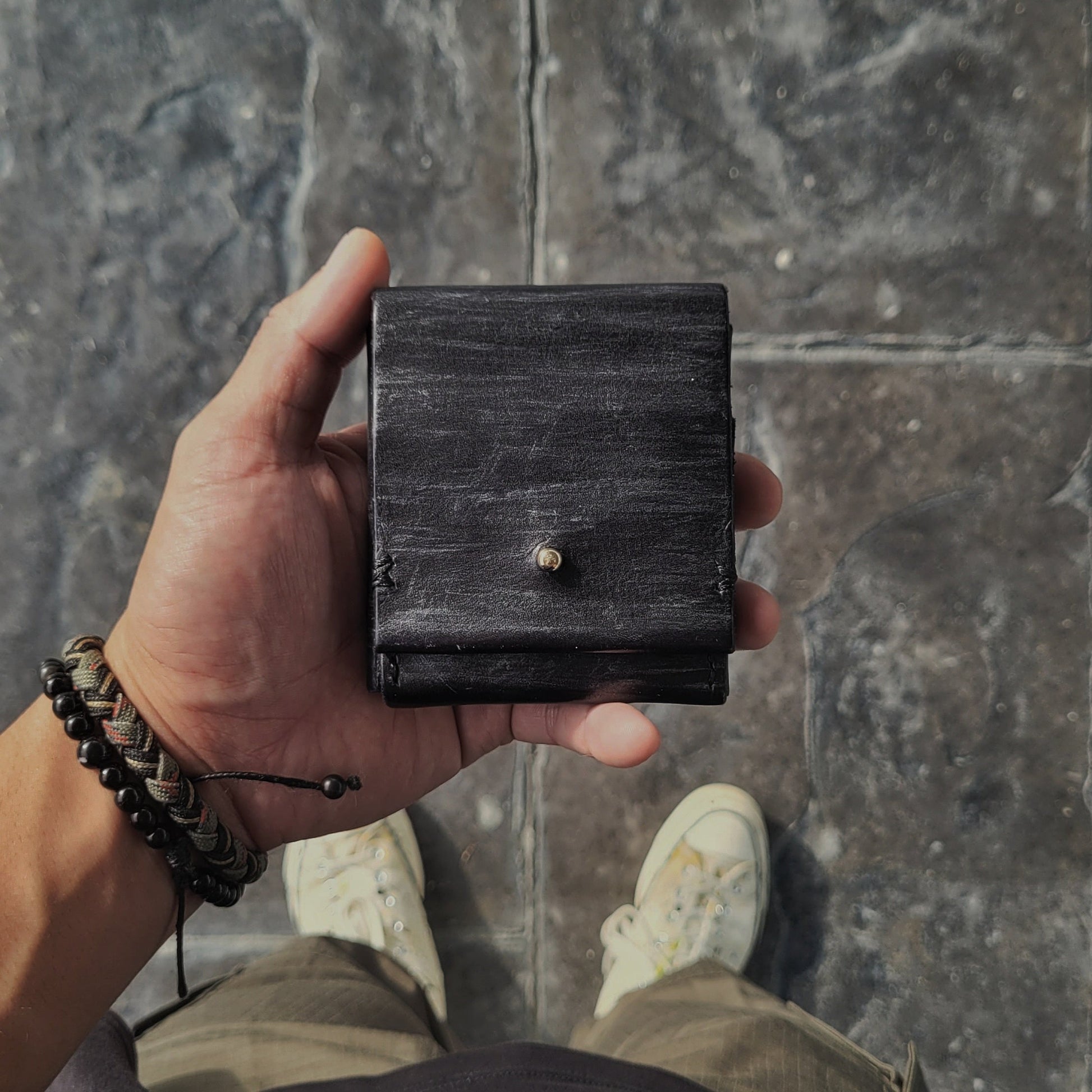 Made, dyed and hand painting entirely by hand, this wallet features a full black wallet body with silver marbling details that is hand painted, creating a unique and elegant look.
